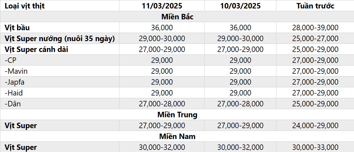 C. ĐIỂM TIN GIÁ VỊT THỊT HÔM NAY NGÀY 11/03/2025
