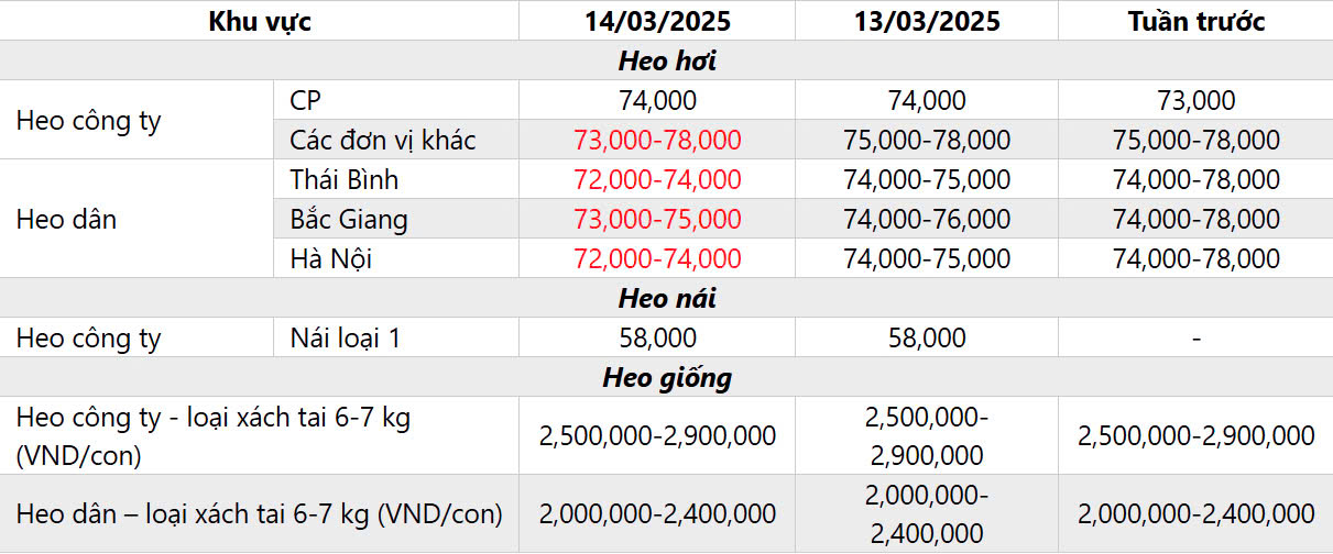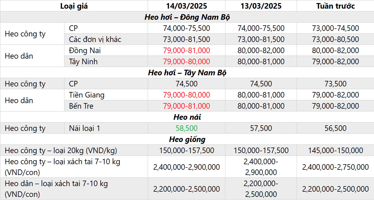 A. BẢNG GIÁ HEO HƠI HÔM NAY NGÀY 14/03/2025