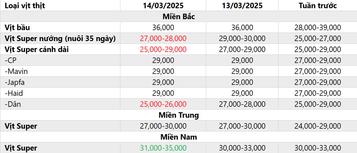 C. ĐIỂM TIN GIÁ VỊT THỊT HÔM NAY NGÀY 14/03/2025