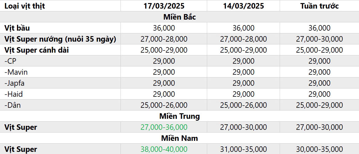 C. ĐIỂM TIN GIÁ VỊT THỊT HÔM NAY NGÀY 17/03/2025