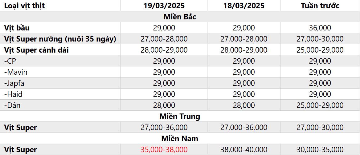 C. ĐIỂM TIN GIÁ VỊT THỊT HÔM NAY NGÀY 19/03/2025
